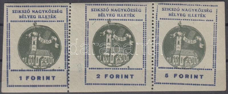 Leírás: 1947 Szikszó városi illetékbélyegek 1Ft, 2Ft, 5Ft hármascsík zöld papíron