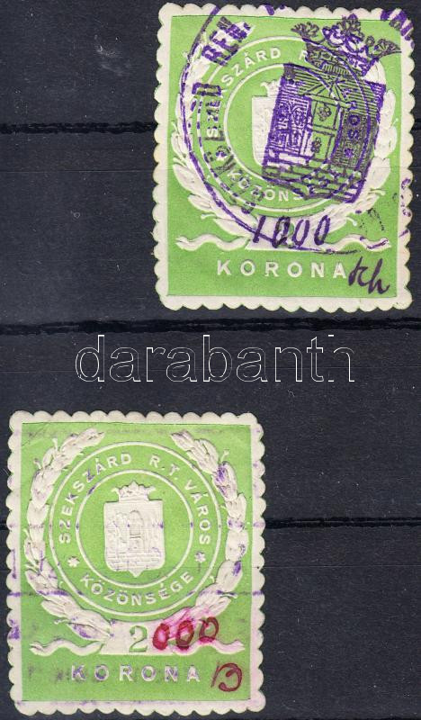 Leírás: Szekszárd 1924 városi illetékbélyeg 1000/2K + 2000/2K