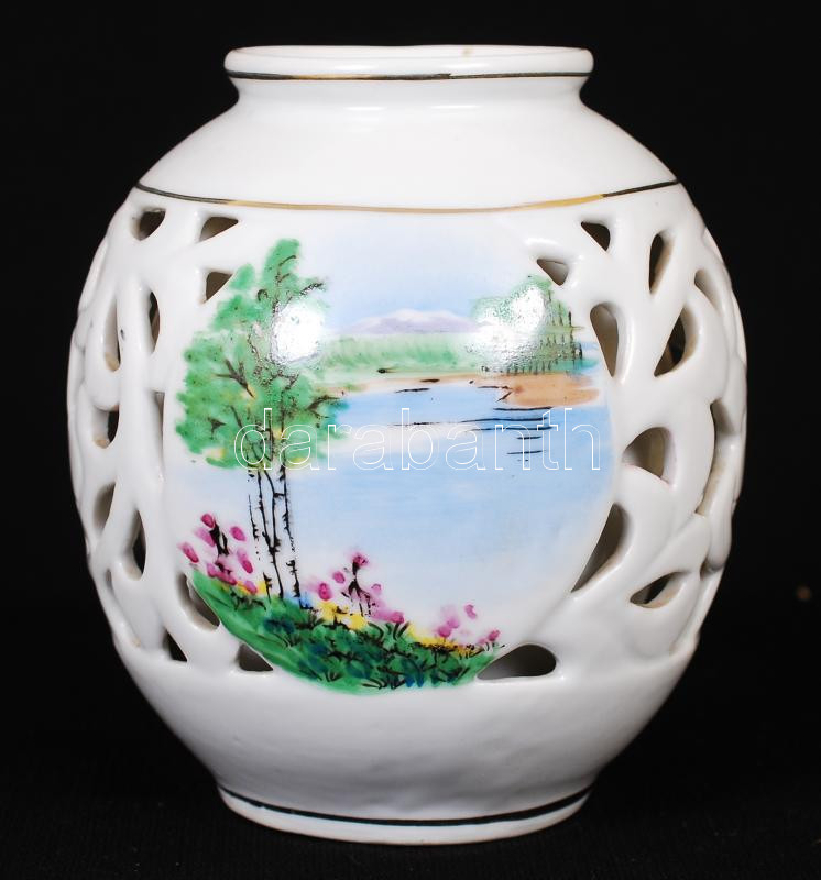 Áttört tájképes porcelán váza, jelzett, m: 12,5 cm https://www.darabanth.com/hu/222-Gyorsarveres/222.0/Festmeny-mutargy-papirregiseg-egyeb/Porcelan~20013/Attort-tajkepes-porcelan-vaza-jelzett-m-12-5-cm~II959138