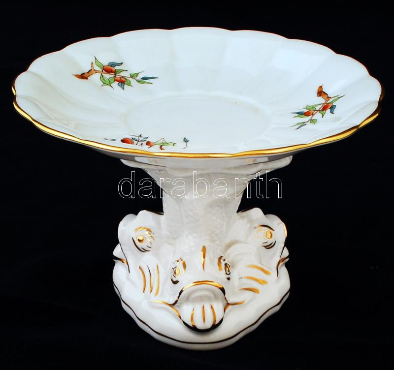 Leírás: Herendi halas kézzel festett csipkebogyó mintás talpas tál, hibátlan, jelzett, d: 14 cm, m: 10 cm