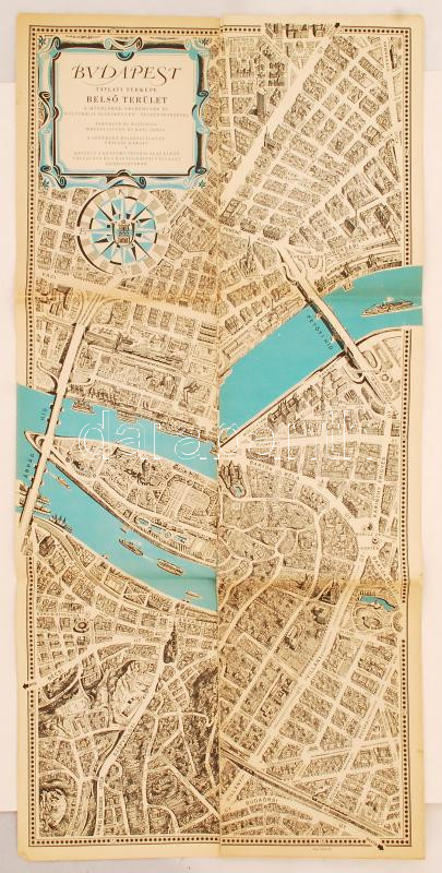 1968 Budapest távlati térképe, belső terület. A műemlékek, emlékművek és kulturális intézmények feltüntetésével. Tervezte Mácsai István, Képzőművészeti Alap Kiadóvállalata - Kartográfiai vállalat, 117×81,5 cm