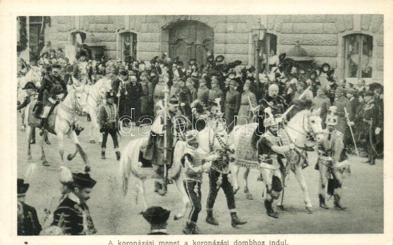 Budapest, IV. Károly koronázása, Koronázási menet a koronázási dombhoz... https://www.darabanth.com/hu/222-Gyorsarveres/222.0/Kepeslapok/Magyarorszag~10006/Budapest-IV-Karoly-koronazasa-Koronazasi-menet-a-koronazasi-dombhoz-indul-EK~II960888