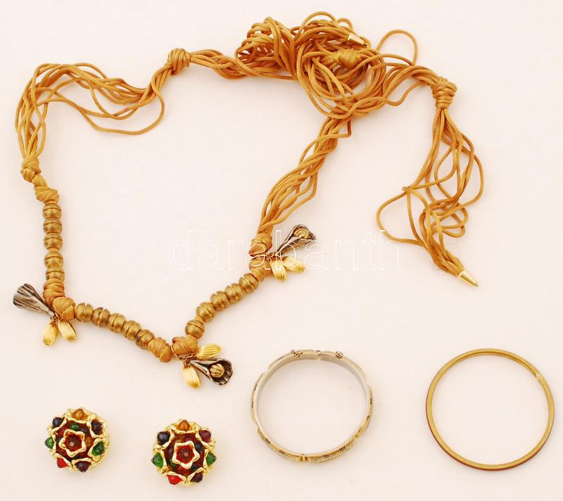 Leírás: Bizsu tétel, 4 db: 2 db karperec, 1 db nyaklánc, 1 pár klipsz