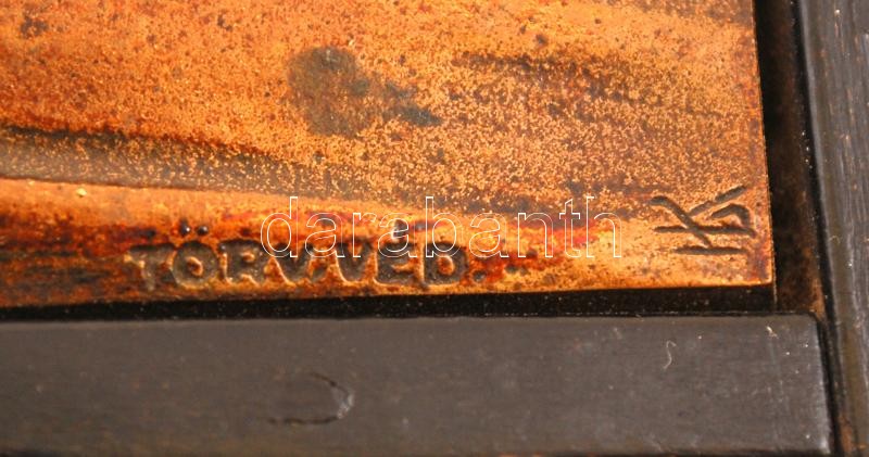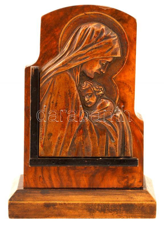 Leírás: Bronz Madonna plaket,(12cm)fa talpon, Art deco, jelzett (KL).
