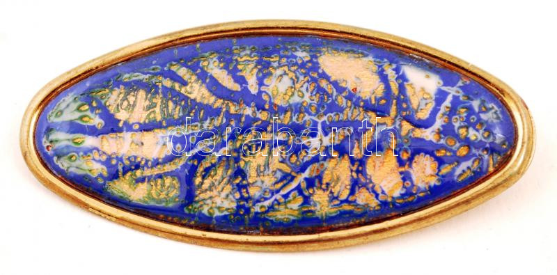 Leírás: Kék-arany színű, növényi ornamentikát mintázó tűzzománc medál. 6x2,8cm
