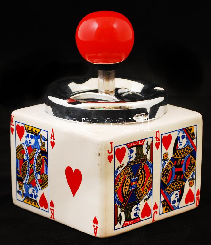 Leírás: Retro üríthető kártyás hamutartó, 9×9×13 cm