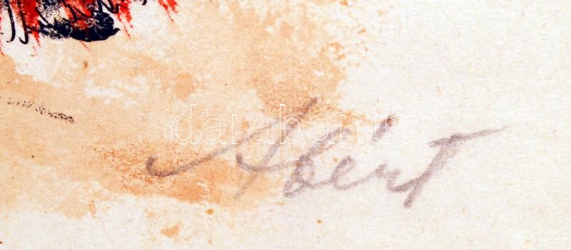 Leírás: Olvashatatlan jelzéssel: Fiatal pár népviseletben. Litográfia, papír, jelzett, 30x43 cm