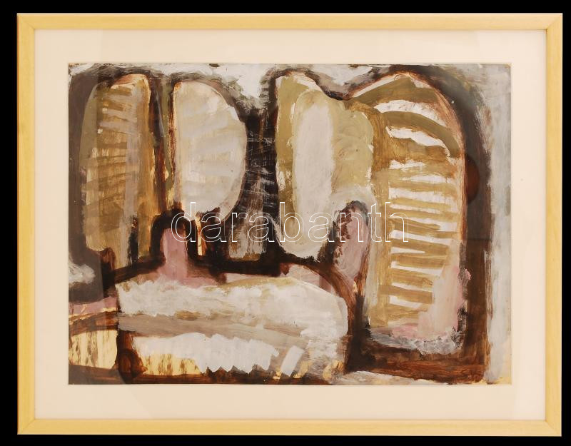 Leírás: Somlai Vilma (1938-2007): Ház fákkal. Olaj, karton, jelzett, üvegezett keretben, 42×59 cm