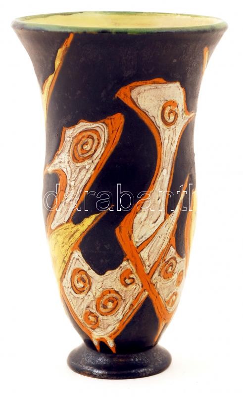 Leírás: Gorka Lívia (1925-2011): Madaras kerámia váza, apró kopásnyomokkal, jelzett, d: 12,5 cm, m: 20,5 cm