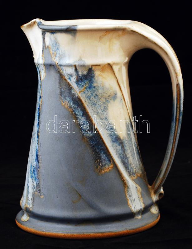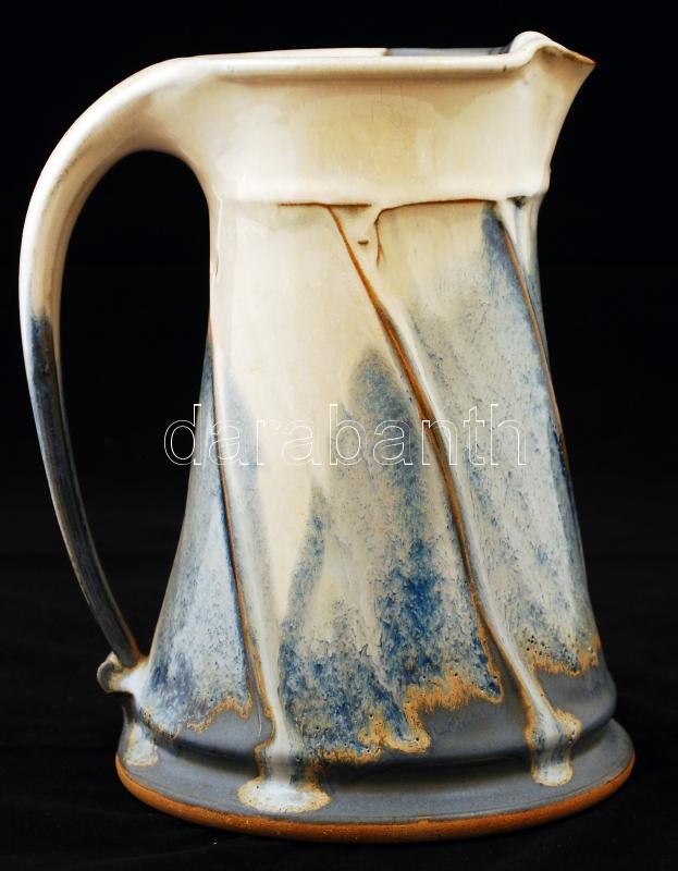 Leírás: Nagyméretű kerámia vizeskancsó, kézzel festett, jelzett, d: 11-15 cm, m: 21,5 cm