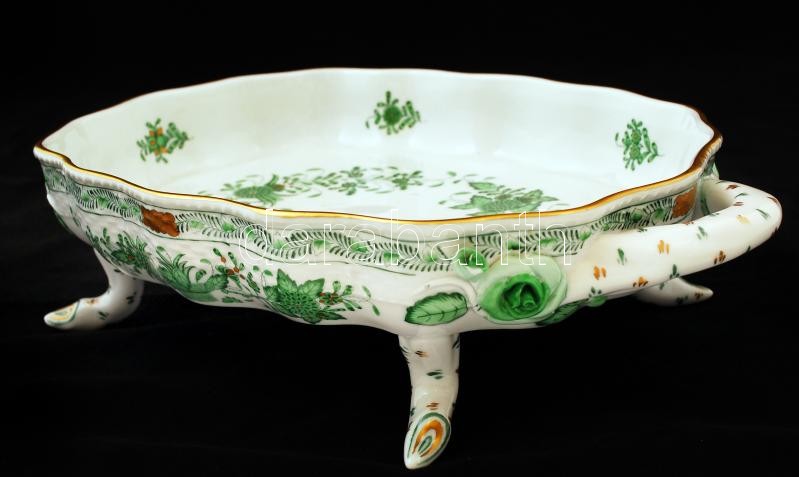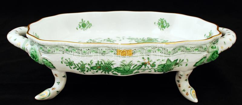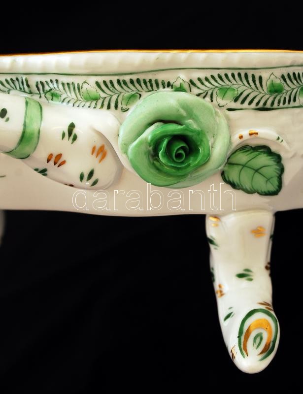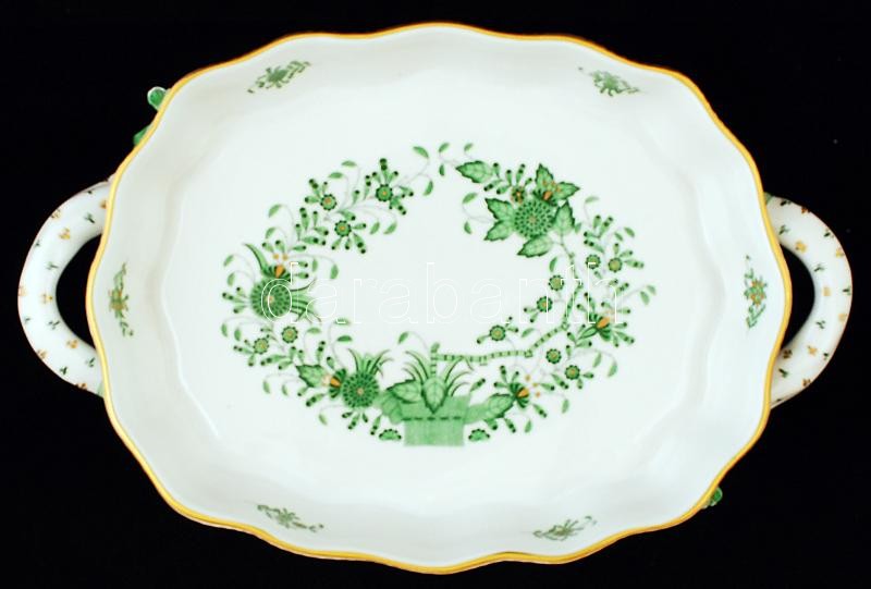 Leírás: Herendi India kosár mintás kínálótál, rózsákon apró lepattanás, kézzel festett, jelzett, 31×20 cm, m:8 cm