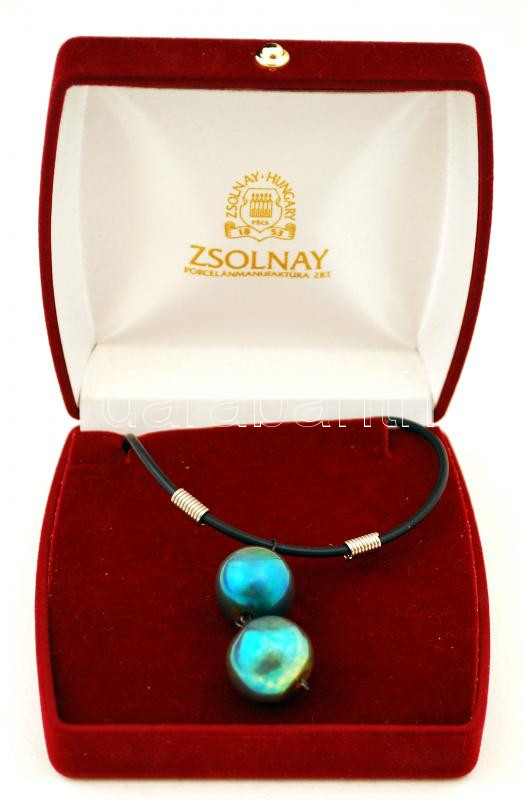 Leírás: Zsolnay eozin mázas medál nyakláncon, eredeti dobozában, jelzett, hibátlan