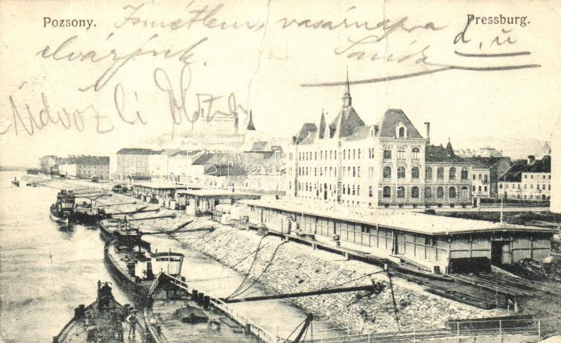 Pozsony, kikötő, gőzhajók / port, steamships (fa) https://www.darabanth.com/hu/223-Gyorsarveres/223.0/Kepeslapok/Felvidek~20010/Pozsony-kikoto-gozhajok-port-steamships-fa~II968944