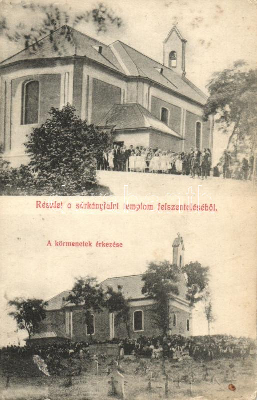 Leírás: Sárkányfalva, templom felszentelés, körmenetek érkezése / church