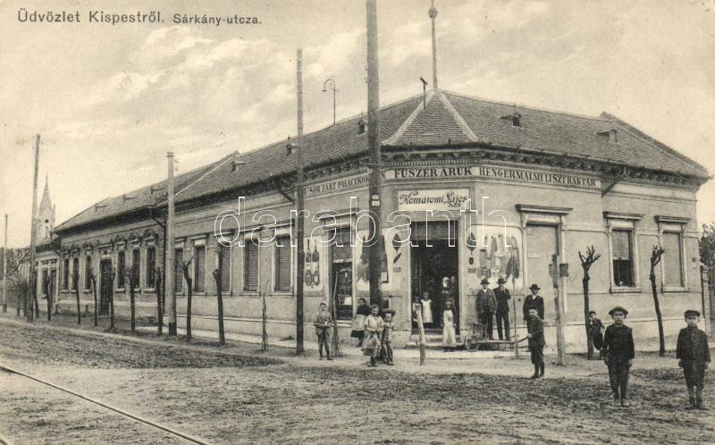 Budapest XIX. Kispest Sárkány utca, Komáromi Lajos vegyeskereskedése; ... https://www.darabanth.com/hu/223-Gyorsarveres/223.0/Kepeslapok/Magyarorszag~20006/Budapest-XIX-Kispest-Sarkany-utca-Komaromi-Lajos-vegyeskereskedese-kiadja-Fischhof-Henrik-ko~II967073