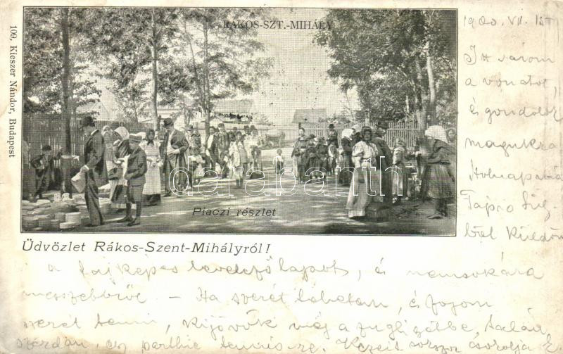 Leírás: Budapest XVI. Rákosszentmihály, Piac, kiadja Kieszer Nándor (EK)
