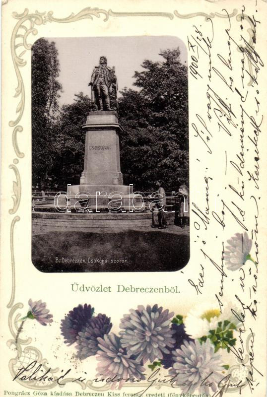 Debrecen, Csokonai szobor, Pongrácz Géza kiadása, Art Nouveau, floral... https://www.darabanth.com/hu/223-Gyorsarveres/223.0/Kepeslapok/Magyarorszag~20006/Debrecen-Csokonai-szobor-Pongracz-Geza-kiadasa--Art-Nouveau-floral-litho~II971058