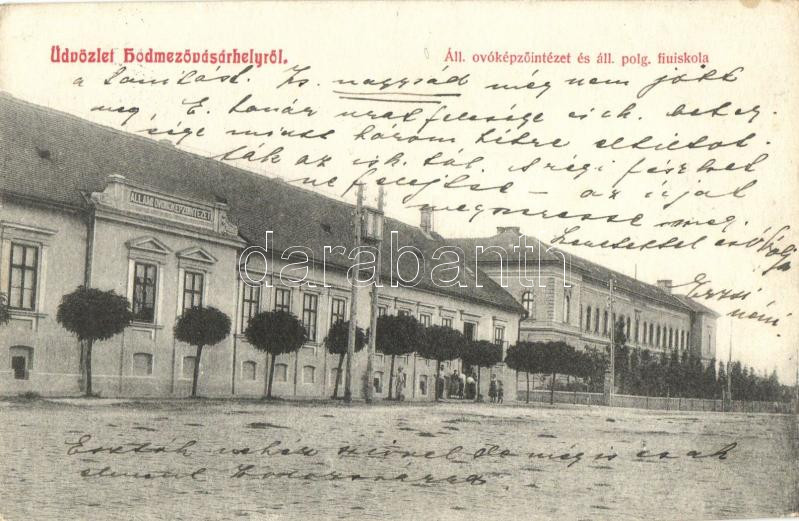 Leírás: Hódmezővásárhely, Állami Óvónőképző Intézet és állami polgári fiú iskola, kiadja Dura Lajos (EK)