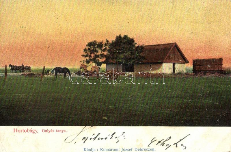 Leírás: Hortobágy, Gulyás tanya, kiadja Komáromi József (EK)