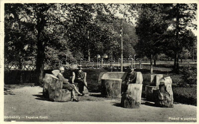 Miskolc, Görömböly-Tapolca, Pihenő a parkban https://www.darabanth.com/hu/223-Gyorsarveres/223.0/Kepeslapok/Magyarorszag~20006/Miskolc-Goromboly-Tapolca-Piheno-a-parkban~II969121