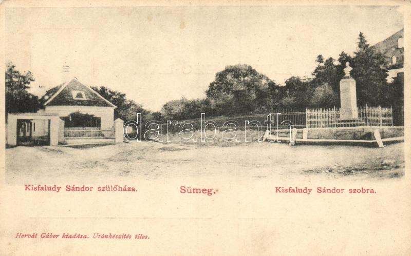 Sümeg, Kisfaludy Sándor szülőháza és szobra, kiadja Horvát Gábor (EK) https://www.darabanth.com/hu/223-Gyorsarveres/223.0/Kepeslapok/Magyarorszag~20006/Sumeg-Kisfaludy-Sandor-szulohaza-es-szobra-kiadja-Horvat-Gabor-EK~II969388