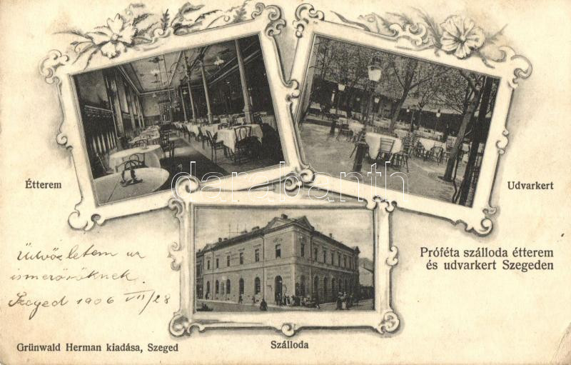 Leírás: Szeged, Próféta szálloda és étterem; floral, kiadja Grünwald Herman (EK)