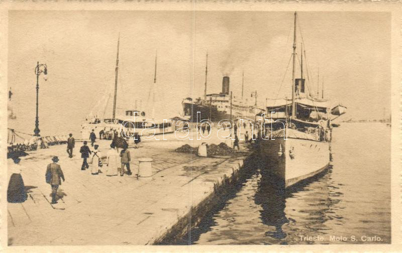 Trieste, Molo S. Carlo, ships https://www.darabanth.com/hu/223-Gyorsarveres/223.0/Kepeslapok/Olaszorszag~40423/Trieste-Molo-S-Carlo-ships~II967149