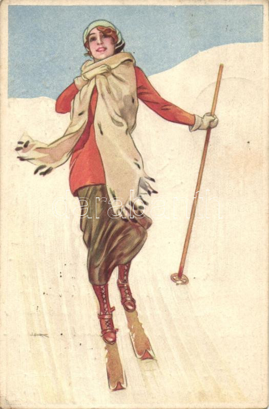 Italian art postcard, skiing lady, Anna & Gasparini 474-1. (EK) https://www.darabanth.com/hu/223-Gyorsarveres/223.0/Kepeslapok/Sport~40401/Italian-art-postcard-skiing-lady-Anna-Gasparini-474-1-EK~II971534