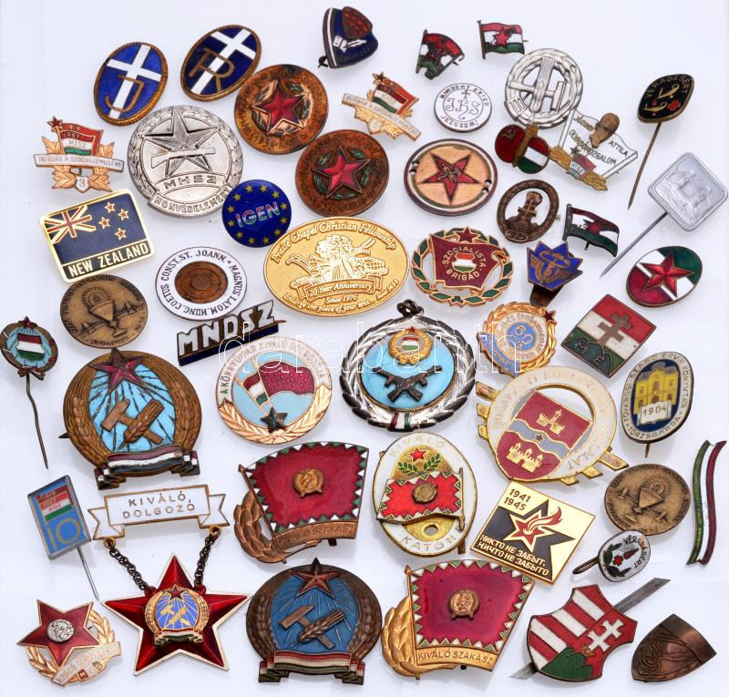 Leírás: 53db vegyes régi és modern jelvény, főleg a szocialista időszakból, sok zománcozott, közte jobb darabokkal! T:vegyes
