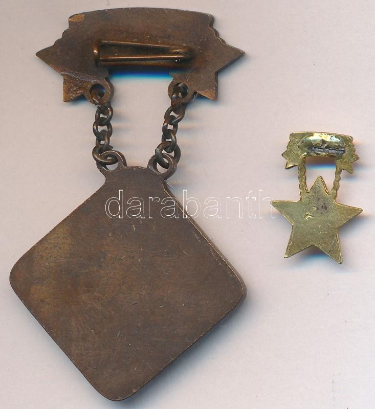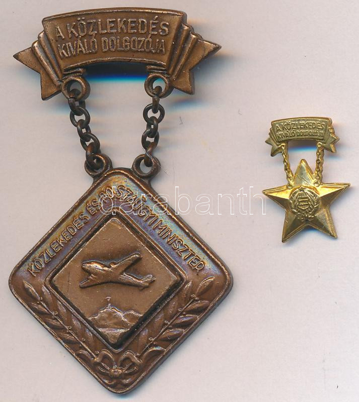 Leírás: ~1950. "A közlekedés kiváló dolgozója / Közlekedés és Postaügyi Miniszter" Br kitüntetés (23x23mm) T:2 + miniatűr