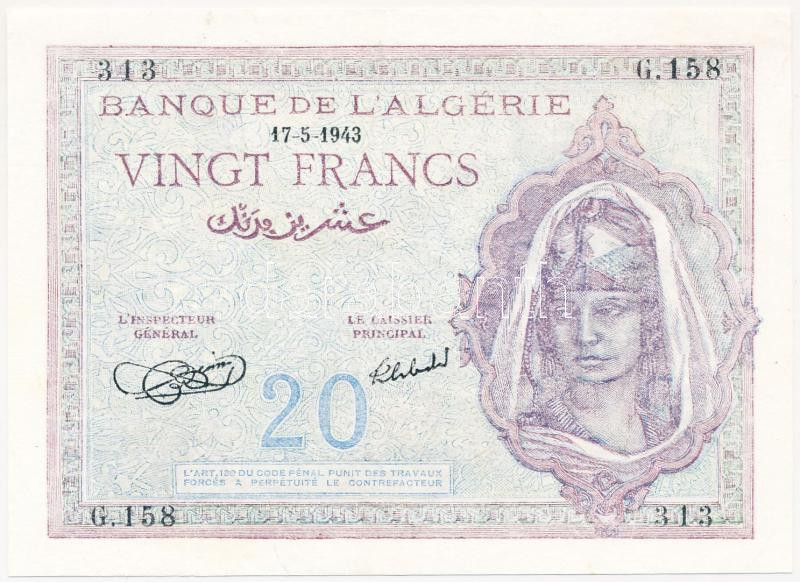 Algeria/Allied occupat... https://www.darabanth.com/hu/223-Gyorsarveres/223.0/Numizmatika/Kulfoldi-bankjegyek~40445/AlgeriaSzovetseges-megszallas-1943-20Fr-TII--3Cbr3EAlgeriaAllied-occupation-1943-20-Francs-~II972378