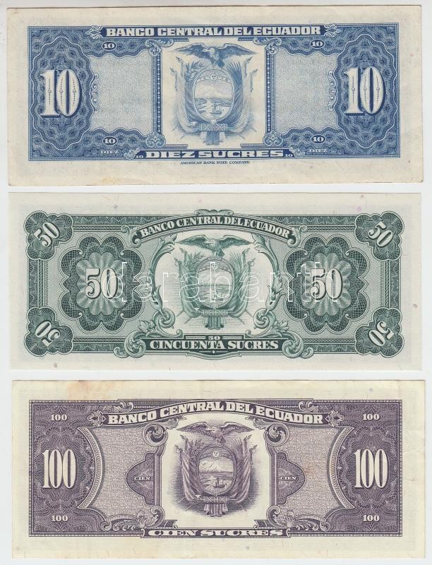 Leírás: Ecuador 1977. 10S + 1984. 50S + 1990. 100S T:I,II-,III