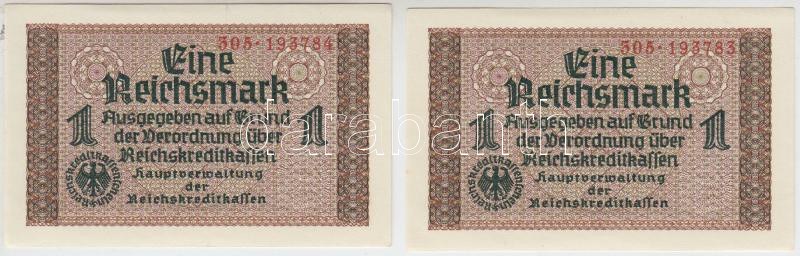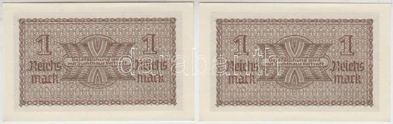 German Third Reich 1940-1945. 1 Mark (2x) sequential serials C:UNC,AU unfolded