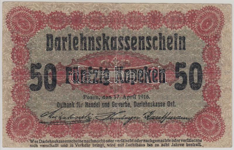 Leírás: Oroszország/I. világháború/német megszállás/Darlehnskasse Ost. 1916. 50k T:III