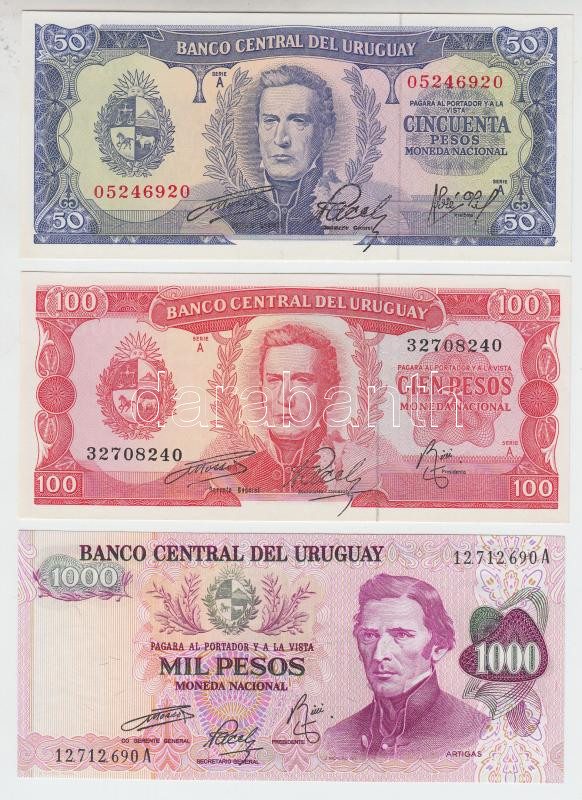 Uruguay 1967. 50 Pesos + 100 Pesos + 1974. 1000 Pesos C:UNC