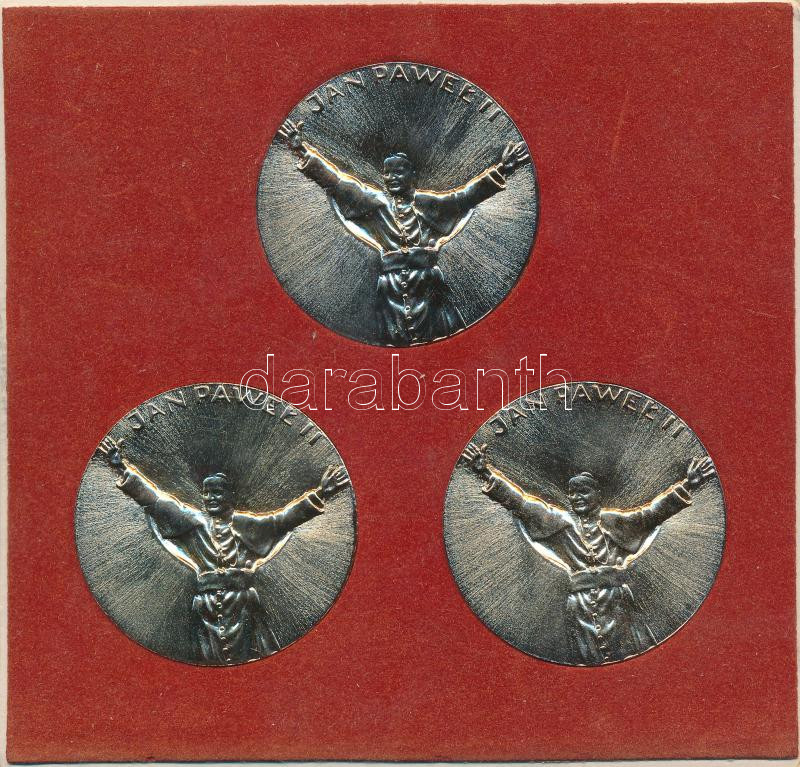 Lengyelország 1983. "II. János Pál pápa" 3xklf aranyozott fém emlékérem dísztokban (40mm) T:1,1-