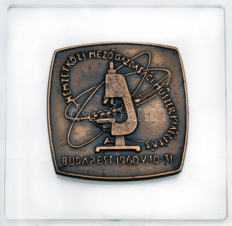 Leírás: 1960. "Nemzetközi Mezőgazdasági Műszerkiállítás Budapest" Br plakett üveglapon, dísztokban T:1-,2