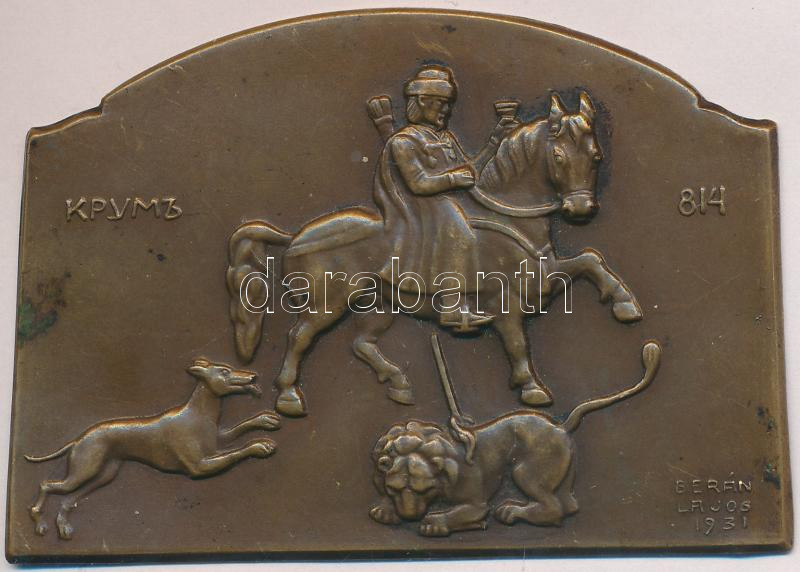Berán Lajos (1882-1943) 1931. "Krum kán" Br plakett (49x69mm) T:2 https://www.darabanth.com/hu/223-Gyorsarveres/223.0/Numizmatika/Magyar-emlekveretek~10010/Beran-Lajos-1882-1943-1931-Krum-kan-Br-plakett-49x69mm-T2~II975711
