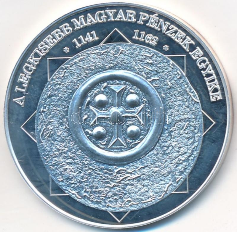 Leírás: DN "A magyar nemzet pénzérméi - A legkisebb magyar pénzek egyike 1141-1162" Ag emlékérem tanúsítvánnyal (10,37g/0,999/35mm) T:PP