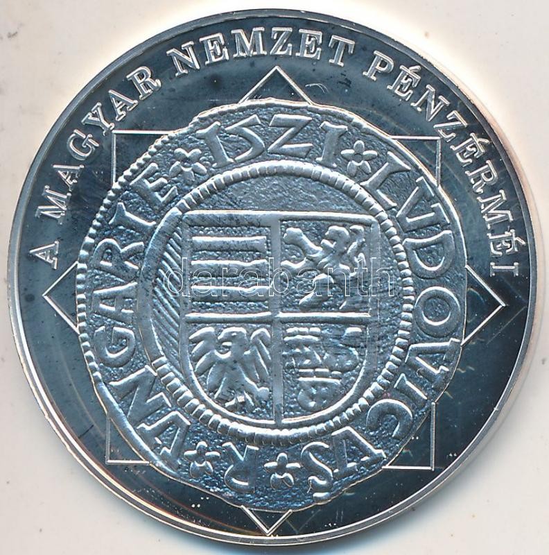 Leírás: DN "A magyar nemzet pénzérméi - Moneta Nova, II. Lajos denárja 1516-1526" Ag emlékérem tanúsítvánnyal (10,37g/0,999/35mm) T:PP