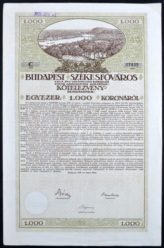 Budapest 1918. "Budapest Székesfőváros" kötelezvénye 1000K-ról magyar ... https://www.darabanth.com/hu/223-Gyorsarveres/223.0/Numizmatika/Reszvenyek-es-sorsjegyek~10006/Budapest-1918-Budapest-Szekesfovaros-kotelezvenye-1000K-rol-magyar-es-nemet-nyelven-szelv~II967290