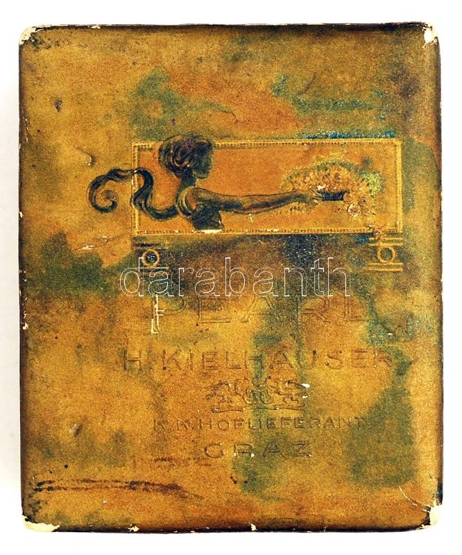 Leírás: cca 1900 H. Keilhauser piperecikk üzlet szecessziós domboronyomású papír dobozka, selyem béléssel / Austria art nouveau box with silk inner 8x6 cm