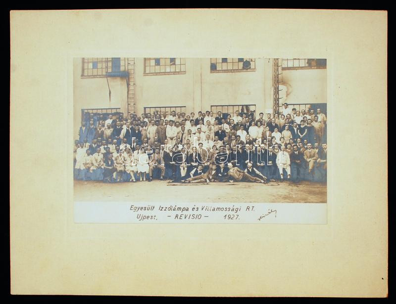 Leírás: 1927 Egyesült Izzólámpa és Villamossági Rt. Revisio munkatársai, 14x21 cm, karton 25x33 cm