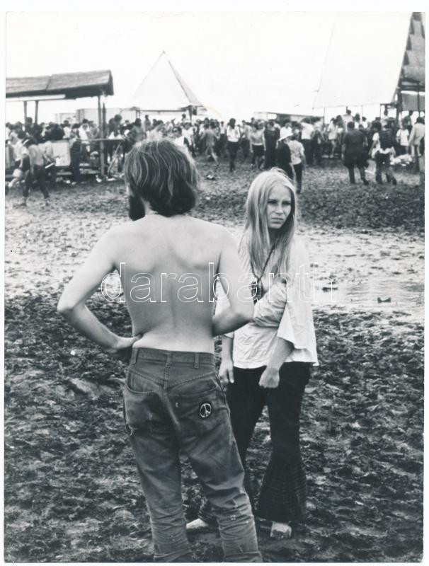 Leírás: 1969 Woodstock-i Fesztivál, 3 nap béke és zene, az eseményről készült film kapcsán megjelent fotó, 24x18 cm