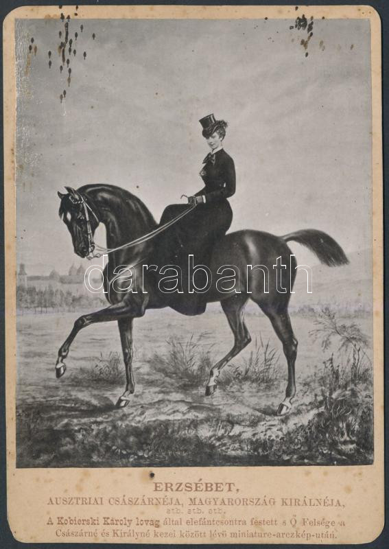 cca 1870-1880 Erzsébet magyar királyné lovon, fénynyomat Kobierski Károly festménye nyomán, 13×10,5 cm /