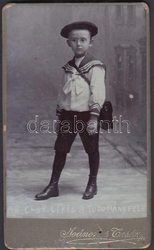 Leírás: cca 1880-1910 Az első lépések a tudomány felé, kolozsvári műteremből, 11×6,5 cm