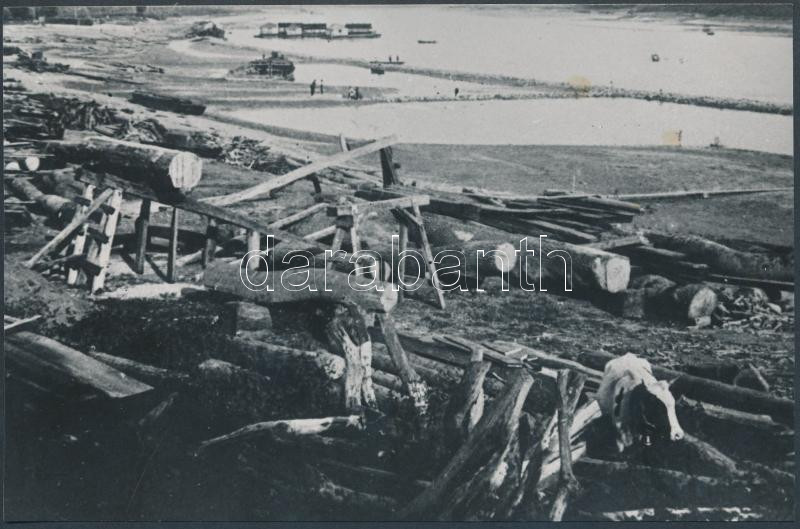 Leírás: cca 1900 Fatelep a Tisza parton, Szeged alatt, jelzetlen, későbbi nagyítás Kerny István (1879-1963) hagyatékából, 12x18 cm