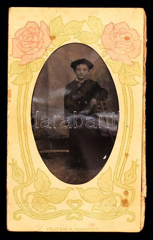 cca 1900 Kisfiú kabátban, régi ferrotípia szecessziós motívumokkal dís... https://www.darabanth.com/hu/224-Gyorsarveres/224.0/Festmeny-mutargy-papirregiseg-egyeb/Foto~33/cca-1900-Kisfiu-kabatban-regi-ferrotipia-szecesszios-motivumokkal-diszitett-papirtokban-9~II979329