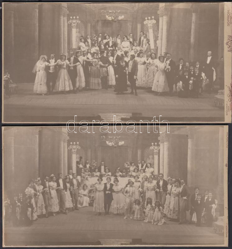 Leírás: cca 1900 Sopron, Színházi előadás, 2 db keményhátú fotó, 21x11 cm