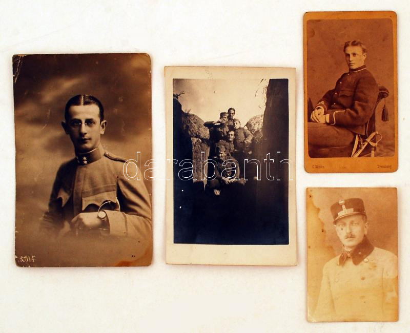 Leírás: cca 1910- 1945, 4db vegyes, puha ill. kemény hátú katona fotó különböző méretben
